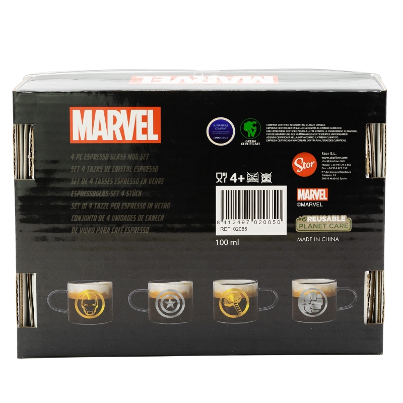YOUNG ADULT 4 PCS EXPRESSO GLASS MUG 100 ML SET MARVEL | Stor BrandRecipient :