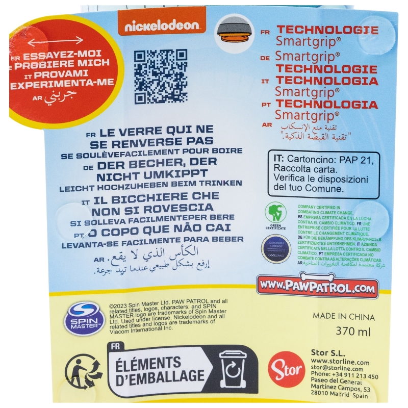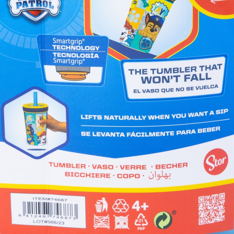 Imprimir informaciónVASO PP ANTIVUELCO CON PAJITA DE SILICONA 370 ML PAW PATROL BOY HI THERE