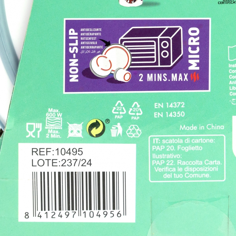 For your child's safety and health: WARNING! Continuous and prolonged sucking of fluids will cause tooth decay. Always check food temperature before feeding. Throw away at the first signs of damage or weakness. Keep components not in use out of the reach of children. Never attach to cords, ribbons, laces or loose parts of clothing. The child can be strangled. Always use this product with adult supervision. Cleaning, sterilising, storing and use: Wash the product before first use and after each use. Before first use, disassemble and clean the product and then place the components in boiling water for 5 minutes. This is to ensure hygiene. Clean the product and its accessories carefully using warm soapy water. Do not use abrasive sponges or harsh chemicals for cleaning. Do not expose the product to direct sunlight or heat sources, or leave it in disinfectant (sterilising solution) for longer than recommended, as this may weaken the product. Store in a dry place, protected from dust. Replace the product if it shows cracks, deformations, or changes in colour or texture. Use it according to the indicated recommendations. Improper use or visible damage may compromise its suitability for contact with food. Please read the instructions carefully and keep the packaging for future reference. Safety instructions: Keep components not in use out of the reach of children. To prepare the food, follow the food-manufacturers instructions. Take extra care when microwave heating. Do not overheat the product. Always stir heated food to ensure even heat distribution and test the temperature before serving. EN 14350:2020+A1:2023 and EN 14372 standards compliant.