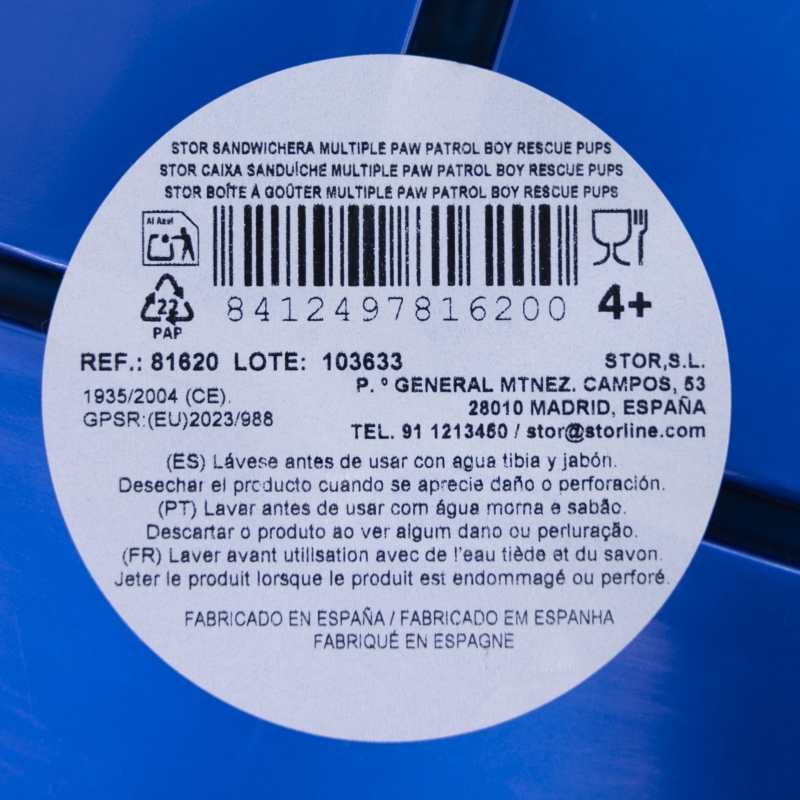 Lave el producto antes del primer uso y después de cada uso. No utilice esponjas abrasivas ni productos químicos agresivos para limpiarlo. Guárdelo en un lugar seco y protegido del polvo. No sobrecalentar el producto. Úselo según las recomendaciones indicadas. Reemplace el producto si presenta grietas, deformaciones o cambios de color o textura. El uso inadecuado o daños visibles pueden comprometer su idoneidad para el contacto con alimentos. No apto para microondas. No apto para lavavajillas. Edad de uso: 4+.