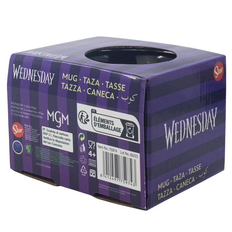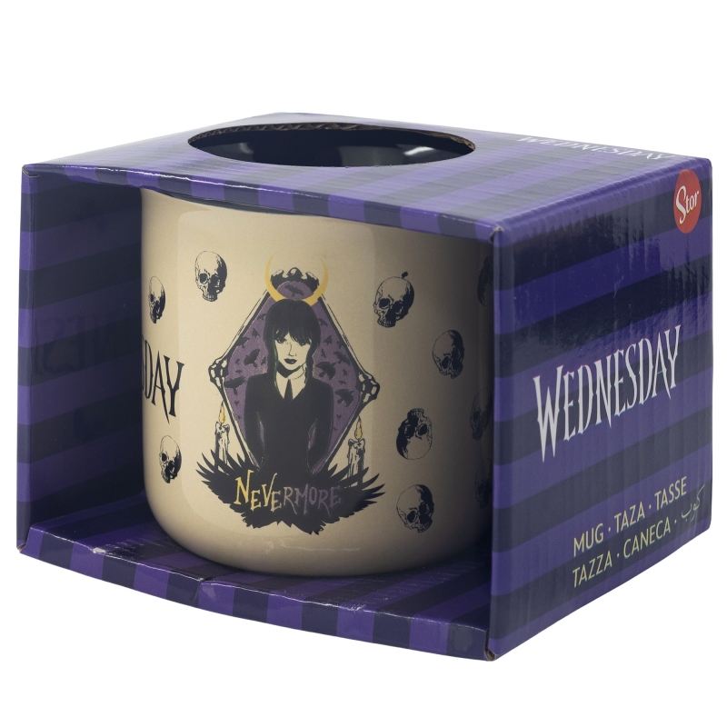 Imprimir informaciónTAZA CERAMICA DESAYUNO 400 ML WEDNESDAY EN CAJA DE REGALO