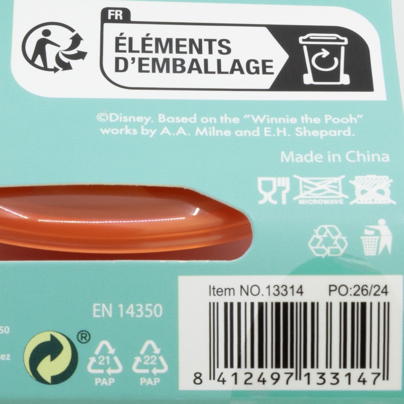 For your child's safety and health: WARNING! Continuous and prolonged sucking of fluids will cause tooth decay. Always check food temperature before feeding. Throw away at the first signs of damage or weakness. Keep components not in use out of the reach of children. Never attach to cords, ribbons, laces or loose parts of clothing. The child can be strangled. Always use this product with adult supervision. Cleaning, sterilising, storing and use: Clean the product before first use and after each use. For hygiene reasons, sterilise it by boiling the water for at least 5 minutes or use a steam steriliser. Wash the product and its accessories thoroughly with warm water and soap. Do not use bleach or any other aggressive cleaning products. Store in a dry place, protected from dust. Do not leave the product exposed to direct sunlight or heat or leave it in disinfectant ("sterilising solution") for any longer than the recommended time. Replace the product if it shows cracks, deformations, or changes in colour or texture. Please read the instructions carefully and keep the packaging for future reference. Use it according to the indicated recommendations. Improper use or visible damage may compromise its suitability for contact with food. Safety instructions: To prepare the food, follow the food-manufacturer's instructions. Take extra care when microwave heating. Never heat up a sealed product in a microwave oven. Although not recommended, if you choose to use a microwave oven to warm the contents, ensure that only the bottle, tumbler or cup body is placed inside. Remove the disc, cap or any other components before heating. The external temperature of the product may not reflect the actual temperature of its contents. Shake or stir thoroughly after heating to ensure even distribution of heat. Do not overheat the product. Dental caries may occur even when no sweetened products or liquids are used. This may happen if the baby or child is allowed to use the product continuously for long periods of time during the day or especially at night, when the saliva level is lower. Never leave the baby to feed alone. Most accidents occur when babies are left to drink or eat alone, because of the baby falling with the article or dismantling it. EN 14350:2020+A1:2023 standard compliant.