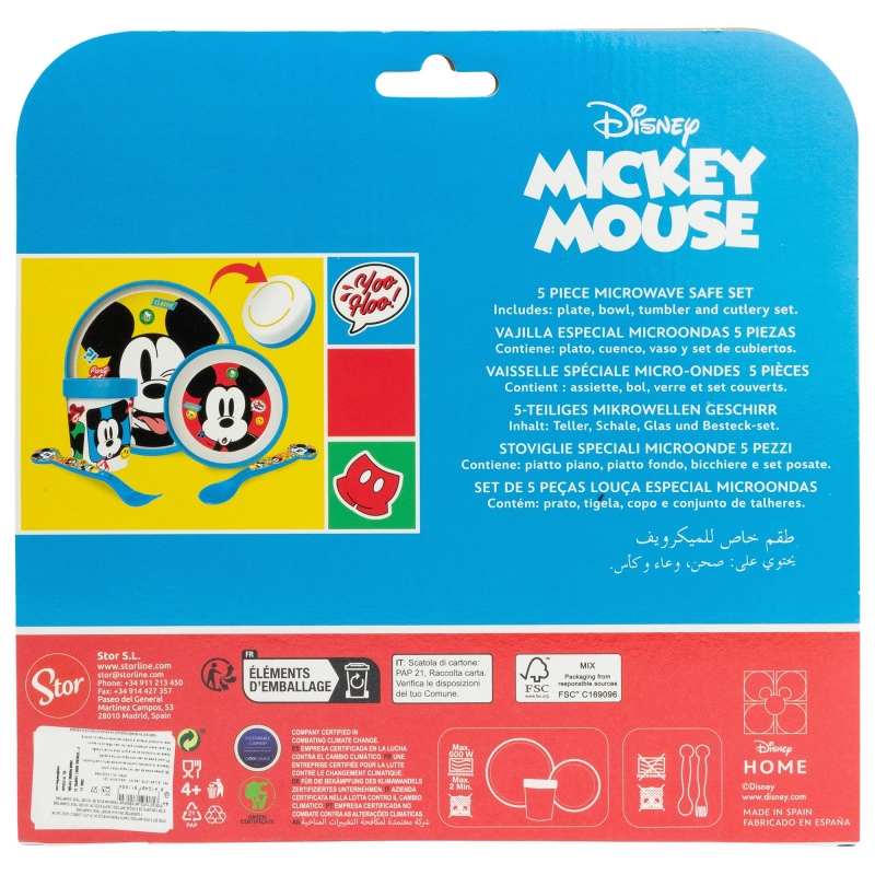 Set vajilla infantil reutilizable apta para microondas compuesto por vaso, plato, cuenco y cubiertos de Mickey