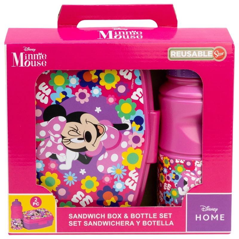 SET VUELTA AL COLE (SANDWICHERA RECTANGULAR Y BOTELLA SPORT EASY HOLD 380 ML) EN CAJA REGALO MINNIE BOLD FLORALS