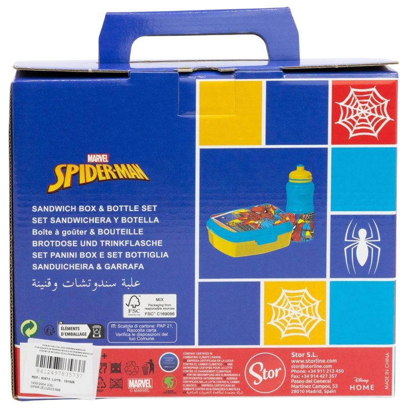 SET VUELTA AL COLE (SANDWICHERA RECTANGULAR Y BOTELLA SPORT EASY HOLD 380 ML) EN CAJA REGALO SPIDERMAN MOB RULES