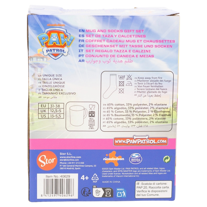 SET DE CALCETINES Y TAZA CERAMICA 325 ML PAW PATROL GIRL GO SKYE