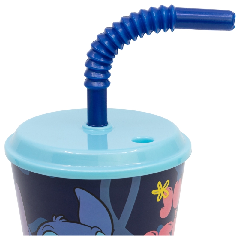 Vaso infantil reutilizable con pajita y tapa con figurita 3D y capacidad de 360 ml de Stitch