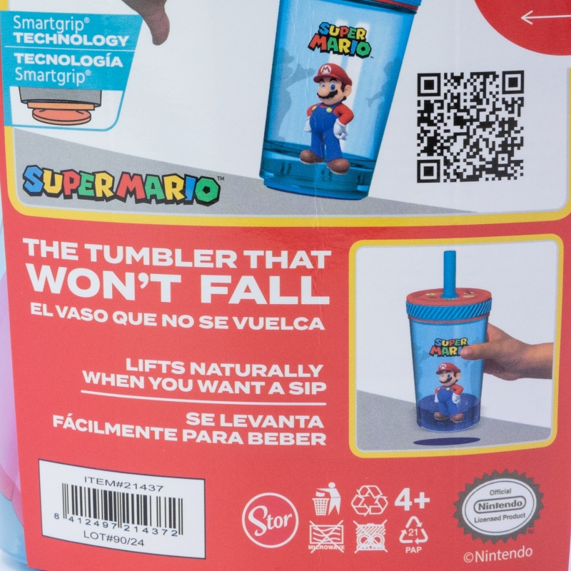 VASO PP ANTIVUELCO CON PAJITA DE SILICONA 370 ML SUPER MARIO FUN EMOTION