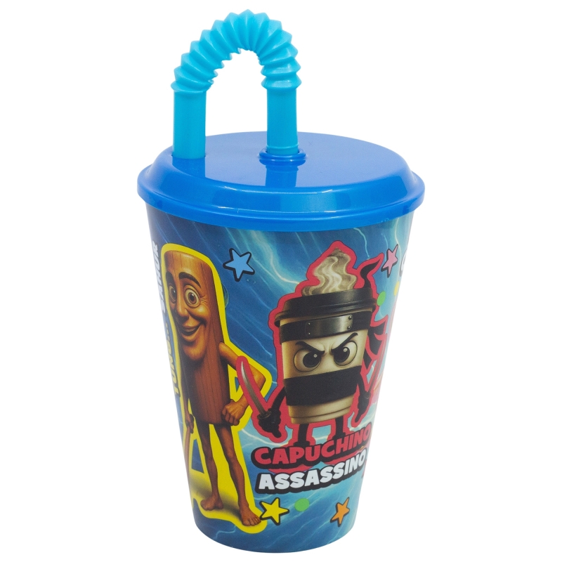 Vaso infantil reutilizable con tapa y pajita de 430 ml de Italian BrainrotDestinatario :