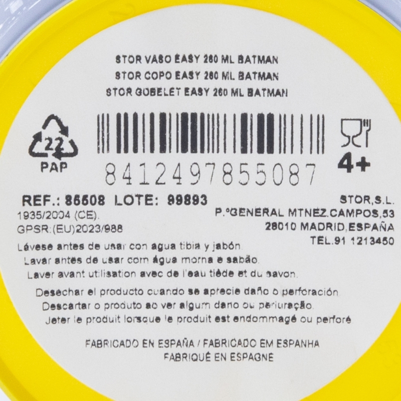 Vaso infantil de plástico reutilizable de 260 ml de BatmanDestinatario :