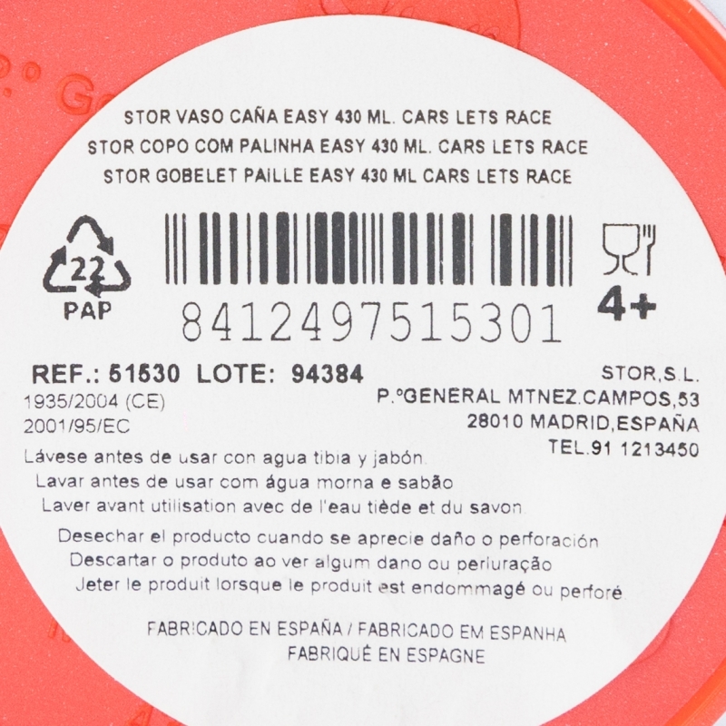 VASO CAÑA EASY 430 ML CARS LETS RACE