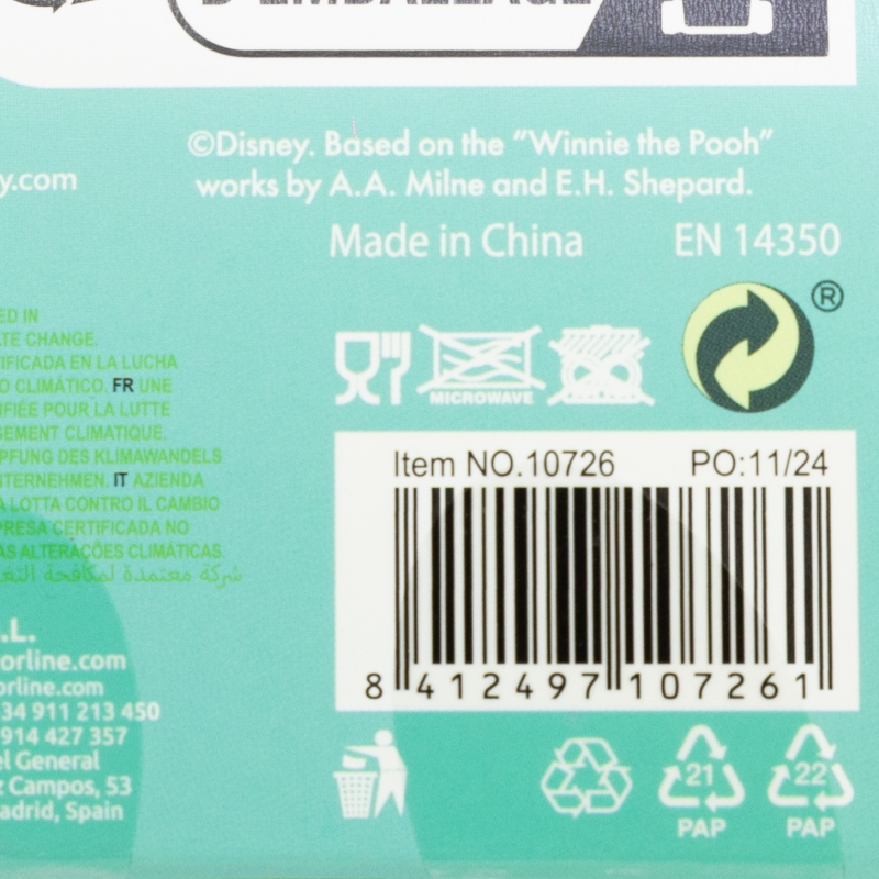 Para la seguridad de su bebé: ¡ADVERTENCIA! La succión continua y prolongada de líquidos puede causar caries. Comprobar siempre la temperatura de la comida antes de dar el alimento. Desechar en los primeros signos de daño o rotura. Mantener fuera del alcance de los niños todos los componentes que no estén en uso. Nunca unirlo a cordones, cintas, lazos o partes sueltas de la ropa. Su niño podría estrangularse. Nunca usar la tetina como chupete. Usar siempre este producto bajo la supervisión de un adulto. Limpieza, esterilización, almacenamiento y uso: Limpie el producto antes del primer uso y después de cada uso. Por razones de higiene, esterilícelo hirviéndolo en agua durante al menos 5 minutos o utilizando un esterilizador de vapor. Lave el producto y sus accesorios cuidadosamente con agua tibia y jabón. No utilice lejía ni otros productos de limpieza agresivos. Guárdelo en un lugar seco y libre de polvo. No exponga la tetina a la luz solar directa ni a fuentes de calor, ni la deje en desinfectantes ("soluciones esterilizantes") por más tiempo del recomendado, ya que podría dañarse. Inspeccione la tetina antes de cada uso, estirándola y tirando de ella en todas las direcciones. Deséchela si detecta signos de desgaste, daños o perforaciones (por ejemplo, si el bebé la ha mordido). Sustituya el producto si presenta grietas, deformaciones o cambios en el color o la textura. Úselo de acuerdo con las recomendaciones indicadas. El uso inadecuado o los daños visibles pueden comprometer su idoneidad para el contacto con alimentos. Lea atentamente las instrucciones y conserve el envase para futuras consultas. Instrucciones de seguridad: Para preparar los alimentos, siga las instrucciones del fabricante. Tenga especial cuidado al calentar en el microondas. Nunca caliente un producto cerrado en el microondas. Aunque no se recomienda, si decide usar el microondas para calentar el contenido, asegúrese de introducir solo el cuerpo del biberón, vaso o taza. Retire el disco, tetina, tapa o cualquier otro componente antes de calentar. La temperatura exterior del producto puede no reflejar la temperatura real de su contenido. Agite o remueva bien después de calentar para garantizar una distribución uniforme del calor. No sobrecaliente el producto. Las caries dentales pueden producirse incluso sin uso de productos o líquidos azucarados. Esto puede ocurrir si se permite que el bebé o niño utilice el biberón de forma continua durante largos periodos del día o, especialmente, durante la noche, cuando el nivel de saliva es menor. Nunca deje al bebé alimentarse solo. La mayoría de los accidentes ocurren cuando los bebés son dejados solos mientras beben o comen, debido a caídas con el artículo o a su desmontaje. Cumple con la norma EN 14350:2020+A1:2023.