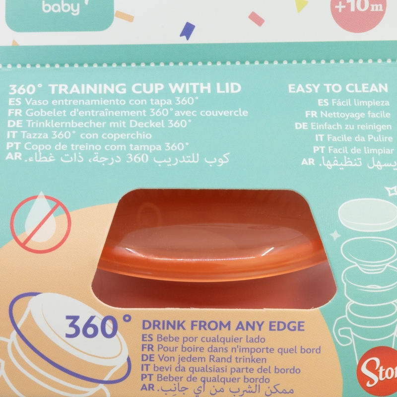 For your child's safety and health: WARNING! Continuous and prolonged sucking of fluids will cause tooth decay. Always check food temperature before feeding. Throw away at the first signs of damage or weakness. Keep components not in use out of the reach of children. Never attach to cords, ribbons, laces or loose parts of clothing. The child can be strangled. Always use this product with adult supervision. Cleaning, sterilising, storing and use: Clean the product before first use and after each use. For hygiene reasons, sterilise it by boiling the water for at least 5 minutes or use a steam steriliser. Wash the product and its accessories thoroughly with warm water and soap. Do not use bleach or any other aggressive cleaning products. Store in a dry place, protected from dust. Do not leave the product exposed to direct sunlight or heat or leave it in disinfectant ("sterilising solution") for any longer than the recommended time. Replace the product if it shows cracks, deformations, or changes in colour or texture. Please read the instructions carefully and keep the packaging for future reference. Use it according to the indicated recommendations. Improper use or visible damage may compromise its suitability for contact with food. Safety instructions: To prepare the food, follow the food-manufacturer's instructions. Take extra care when microwave heating. Never heat up a sealed product in a microwave oven. Although not recommended, if you choose to use a microwave oven to warm the contents, ensure that only the bottle, tumbler or cup body is placed inside. Remove the disc, cap or any other components before heating. The external temperature of the product may not reflect the actual temperature of its contents. Shake or stir thoroughly after heating to ensure even distribution of heat. Do not overheat the product. Dental caries may occur even when no sweetened products or liquids are used. This may happen if the baby or child is allowed to use the product continuously for long periods of time during the day or especially at night, when the saliva level is lower. Never leave the baby to feed alone. Most accidents occur when babies are left to drink or eat alone, because of the baby falling with the article or dismantling it. EN 14350:2020+A1:2023 standard compliant.