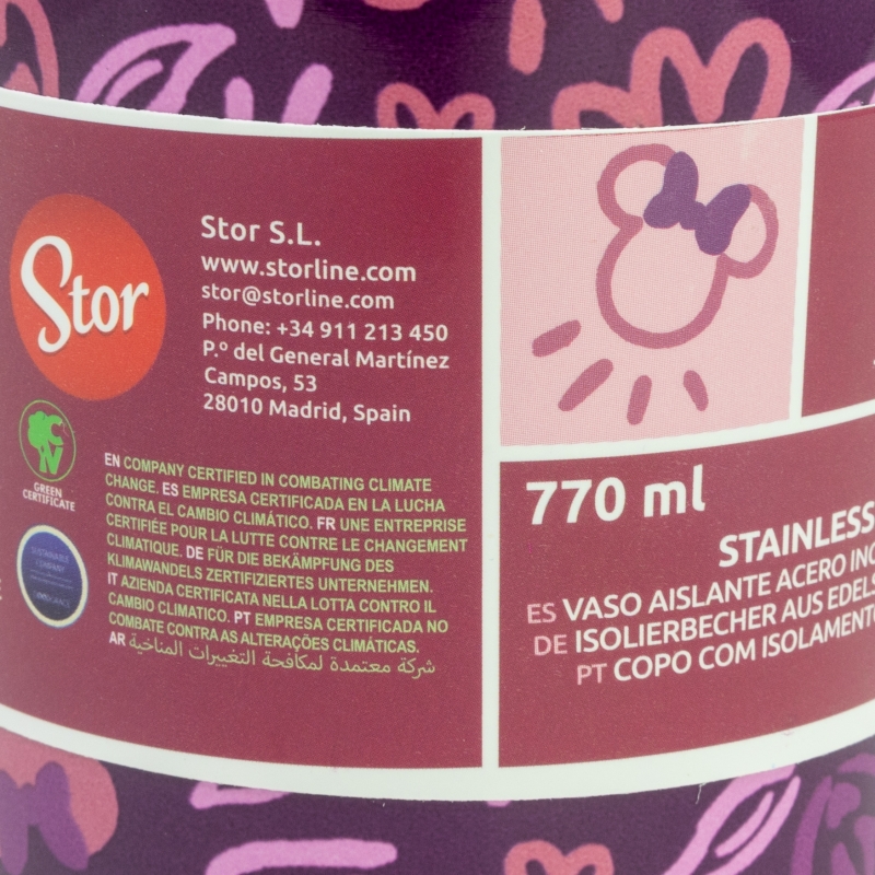 VASO TERMO ACERO INOXIDABLE CON CAÑA 3D 770 ML MINNIE MOUSE CHERRYLICIOUS
